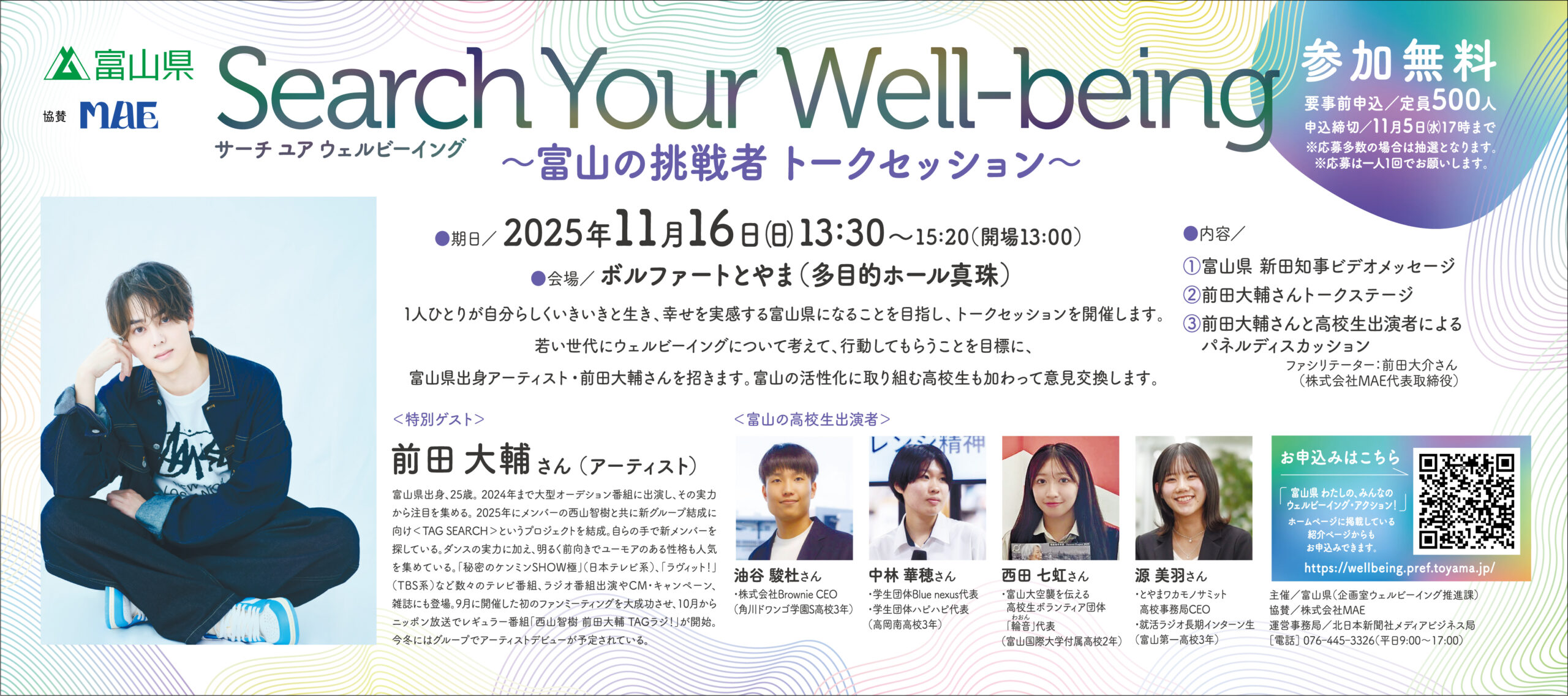 特別ゲストには、富山県出身アーティスト前田大輔さん(TAG SEARCH) をお迎えし、