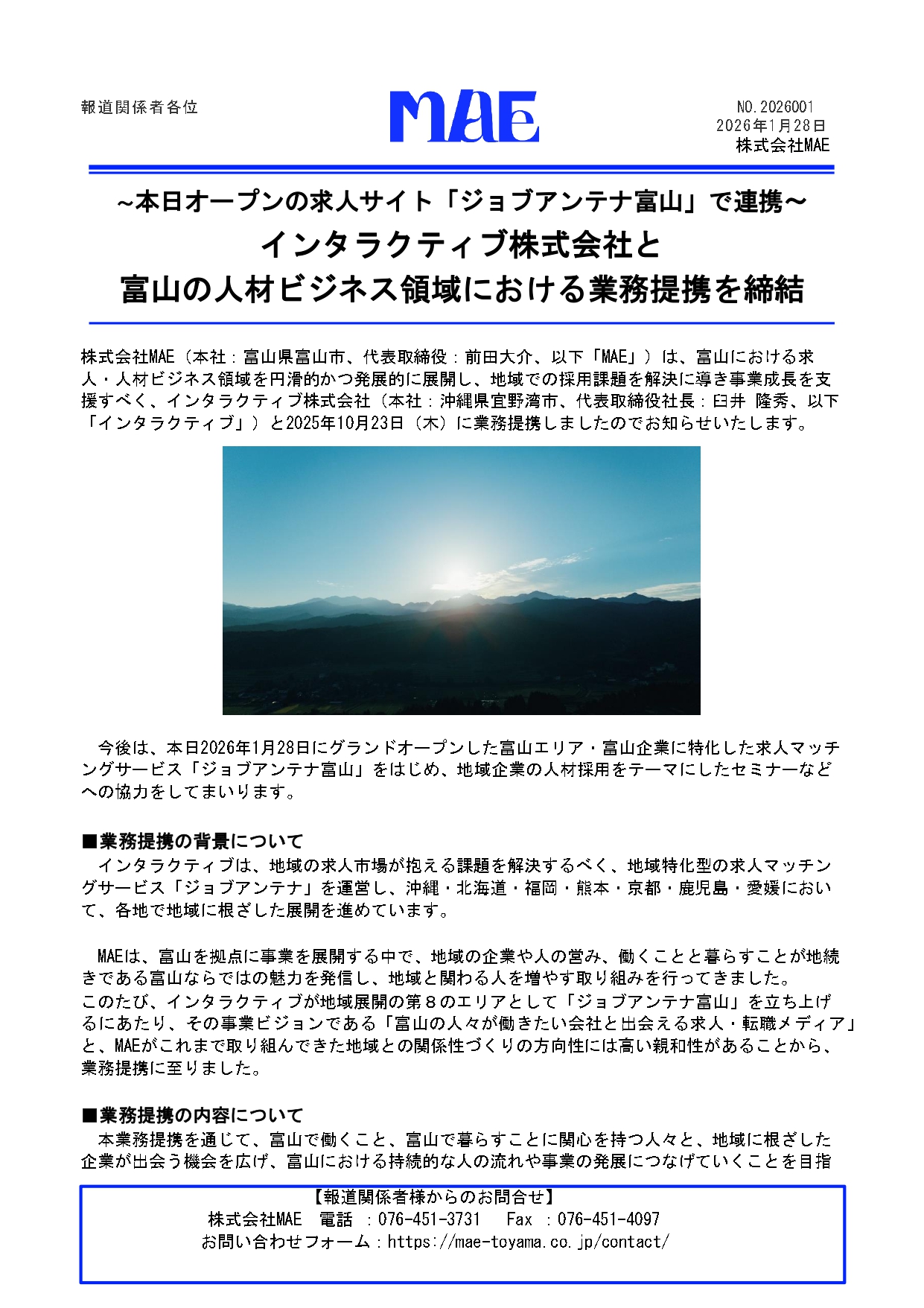 インタラクティブ株式会社と富山の人材ビジネス領域における業務提携締結